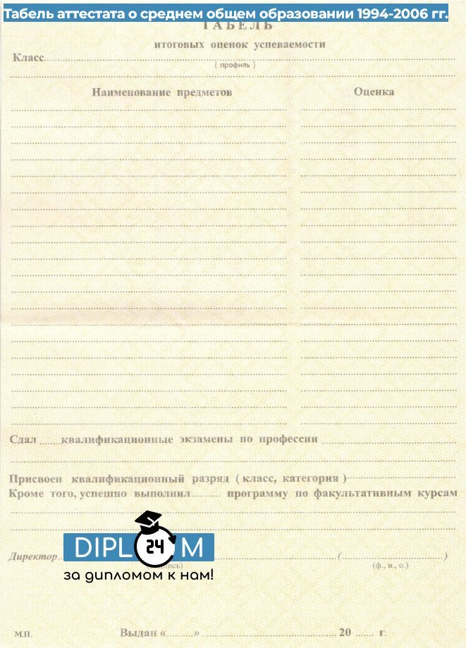 Аттестат школы 9 класс 1994-2006 гг.