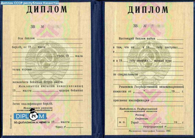 - Диплом СССР о высшем образовании Республики Казахстан