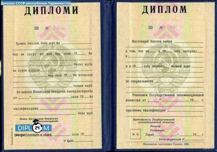- Диплом СССР о высшем образовании Республики Таджикистан