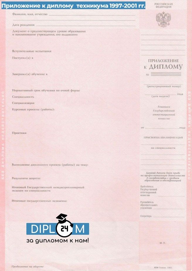 Диплом техникума 1997-2001 гг.