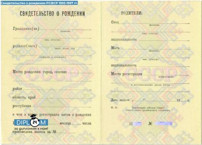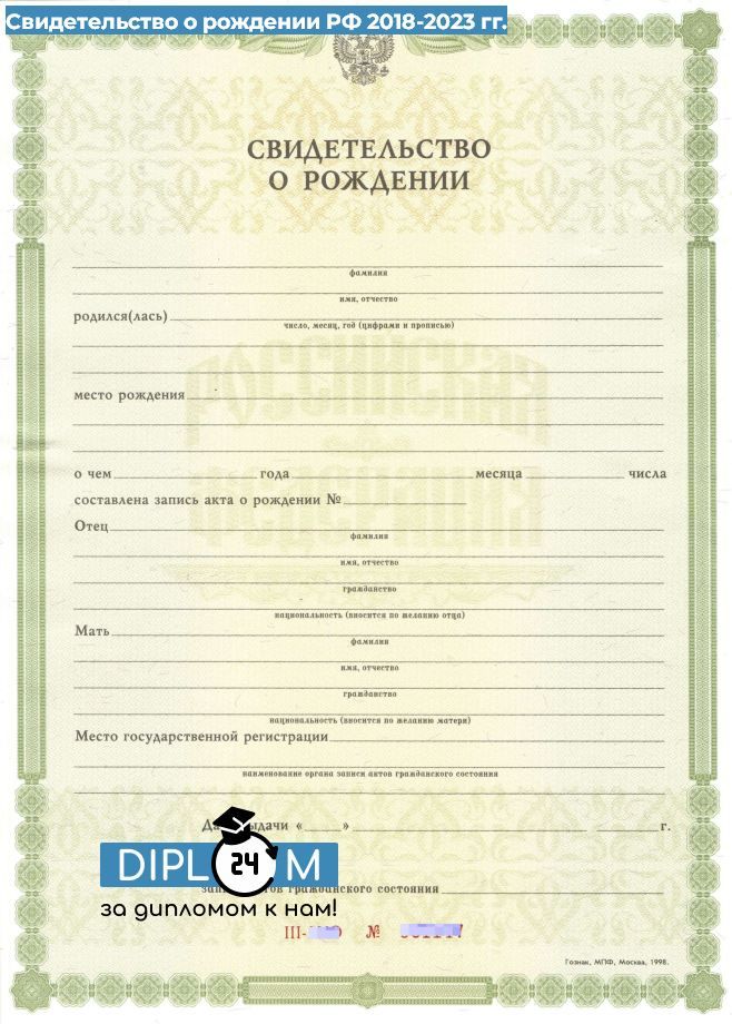 - Комплектация: заполненный бланк свидетельства о рождении с печатями и подписями